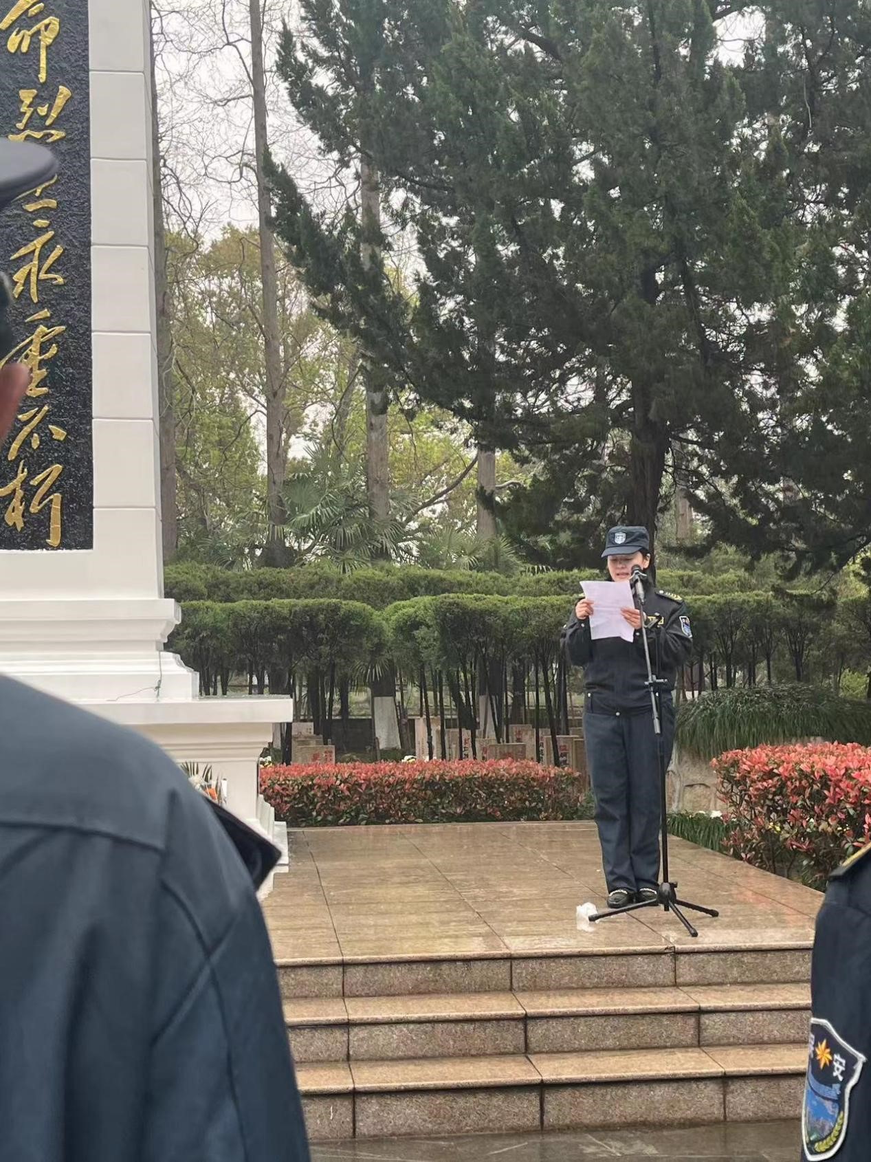 国歌毕,公司中层干部代表缓步走到纪念碑前,庄重宣读祭文。祭文字字恳切,句句深情,回顾了革命先烈们在硝烟弥漫的战争年代,为了国家和人民的利益,舍生忘死、浴血奋战的英雄事迹,字里行间满是对先烈的追思与敬意,表达了全体保安人对先烈的无限追思,以及继承先烈遗志、守护一方平安的坚定决心。