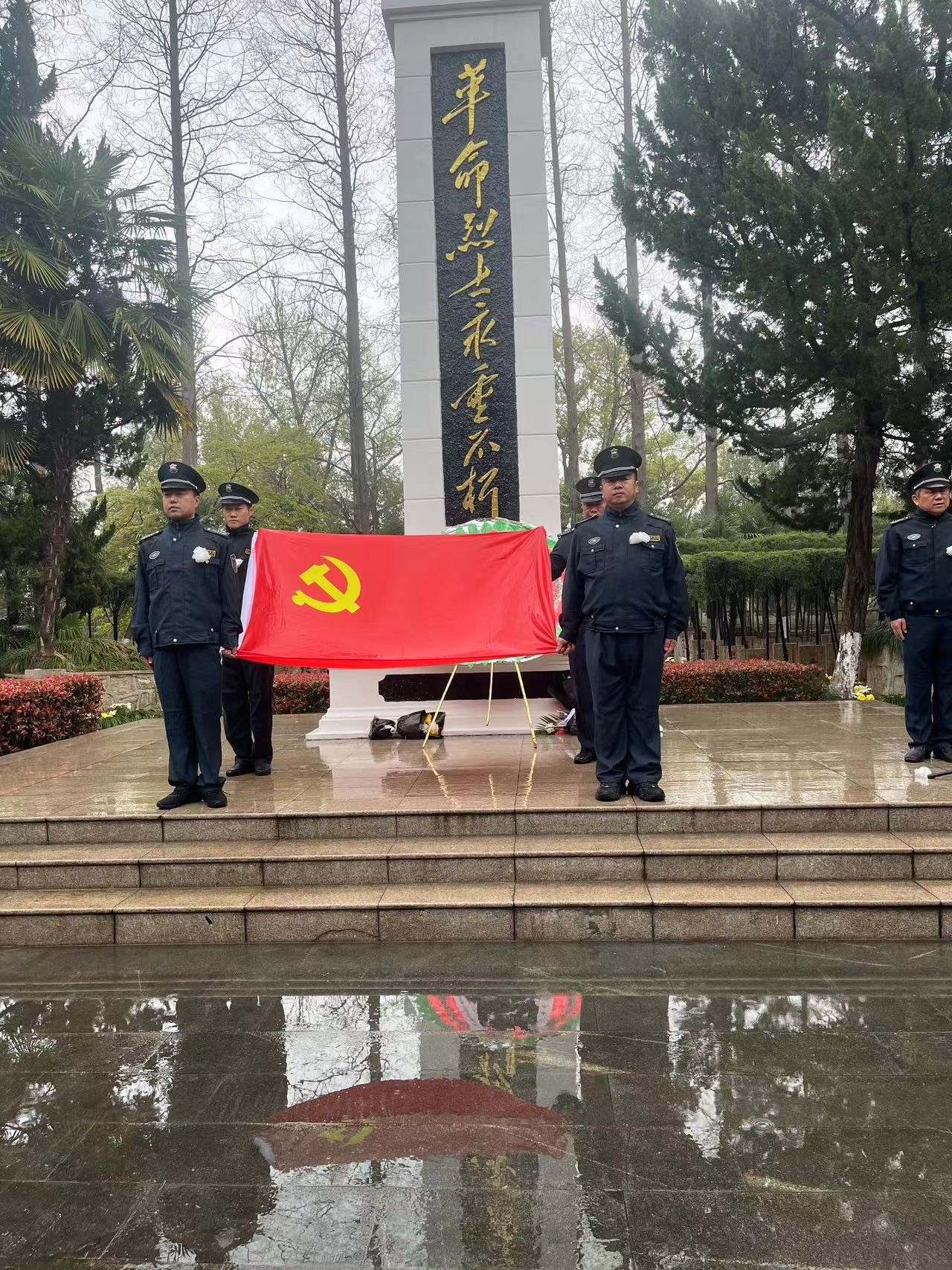 “迎党旗!”伴随着响亮的口号,鲜艳的党旗在陵园中徐徐展开。公司党支部书记带领全体党员,面向党旗,举起右拳,庄严重温入党誓词:“我志愿加入中国共产党,拥护党的纲领,遵守党的章程……”铿锵有力的誓言,彰显着党员们不忘初心、牢记使命的坚定信念,更传递出传承红色血脉、守护平安的责任担当。宣誓完毕,全体党员在党旗下合影留念,定格这庄严而神圣的时刻。